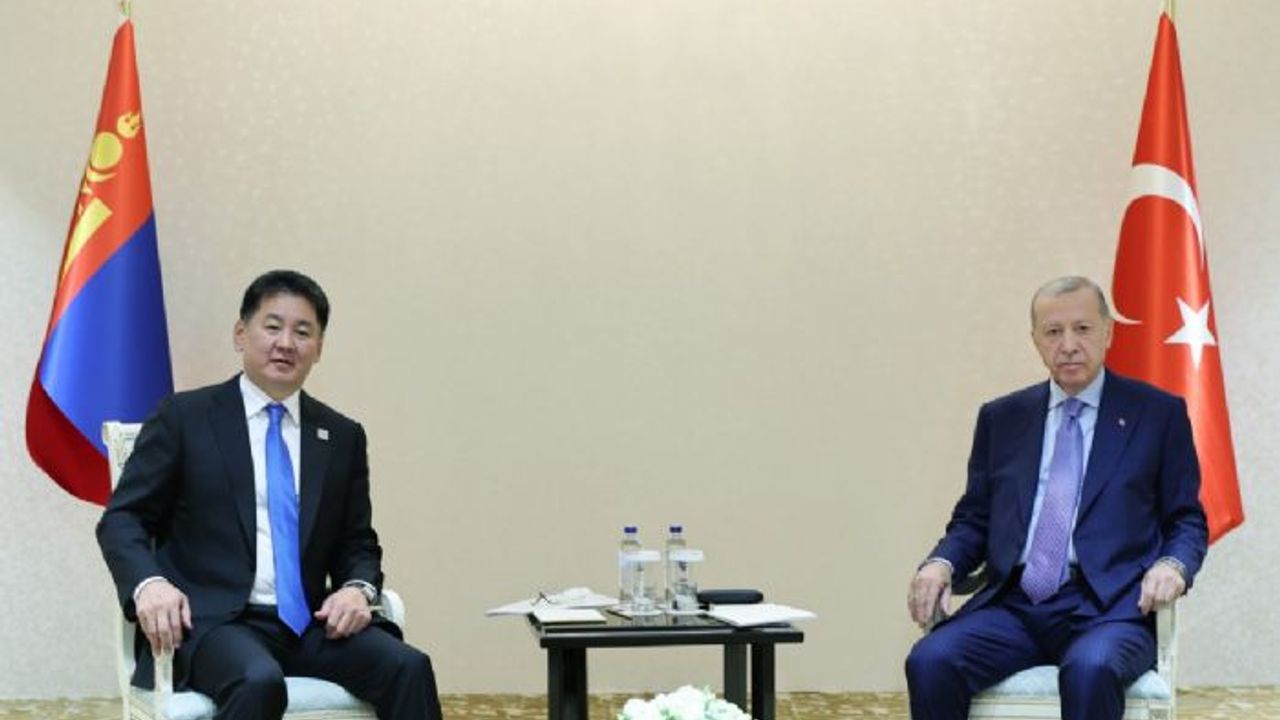 Erdoğan, ziyaretinin ikinci gününde Moğolistan Cumhurbaşkanı Ukhnaagiin Khurelsukh ile bir arya geldi.