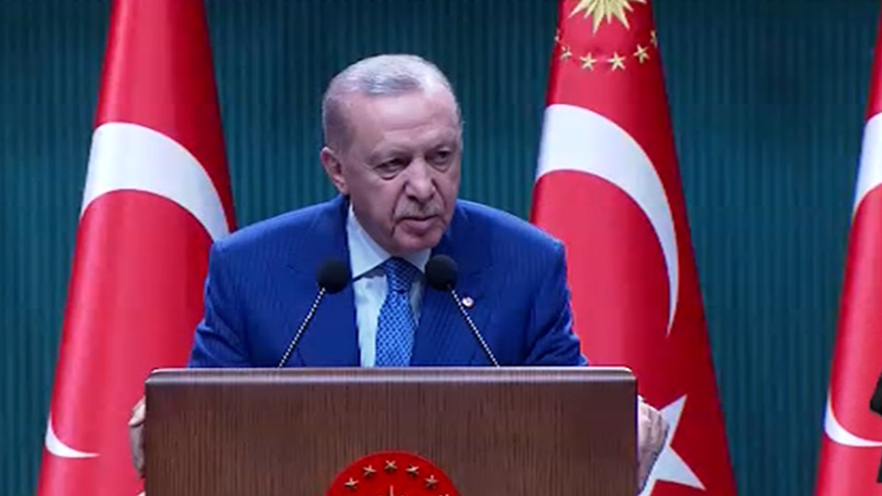 Cumhurbaşkanı Erdoğan, Kabine Toplantısı'nın ardından basın açıklaması yaptı. Erdoğan, "Göreve gelirken ülkemizi her alanda kalkındıracağımızı, yurdumuzu daha emniyetli, daha huzurlu, daha müreffeh, daha bayındır hale getireceğimizi, Türkiye'nin itibarını uluslararası alanda artıracağımızı ifade etmiştik. Hangi makamda olursak olalım, hiçbir ayrım yapmadan Türkiye için aşkla koşacağımızın sözünü vermiştik. 23 yıldır milletimize olan ahdimize sadık kalıyoruz. 23 yıldır 86 milyonun her bir ferdine hizmetkarlık ediyoruz. 23 yıldır aşkla koşuyor, aşkına koşan yorulmaz diyoruz. Ana muhalefet partisi gibi 'Atam izindeyiz' deyip yılın tamamında izin yapanlardan, maaşını alamayan emekçi kardeşlerimiz eylemdeyken tropik adalarda keyif çatanlardan değiliz. İlk günkü heyecanımızla Türkiye'yi bir baştan diğer başa ihya etmenin, millete hizmet meşalesini daha da yükseltmenin samimi gayreti içindeyiz" dedi. Cumhurbaşkanı Erdoğan, son Kabine Toplantı'ndan bu yana millete ve memlekete hizmet yolunda çalışmalarını büyük bir coşkuyla devam ettirdiklerini, dış politikada Suriye ve İran bağlamında kritik gelişmeleri yakından takip ederken, içeride de eser siyasetlerini hız kesmeden sürdürdüklerini kaydetti.