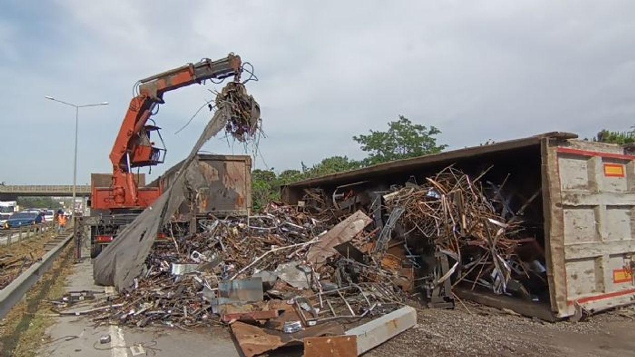 D100'de hurda yüklü tır devrildi: Yol 3 saat kapalı kaldı