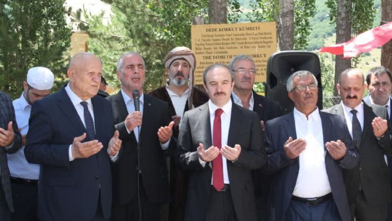 Kurban Çil'in Dede Korkut soylamalarından örnekler sunduğu açılış etkinliğinde şölen komitesi tarafından Korkut Ata'nın kabrine çiçek bırakılarak, dualar edildi.