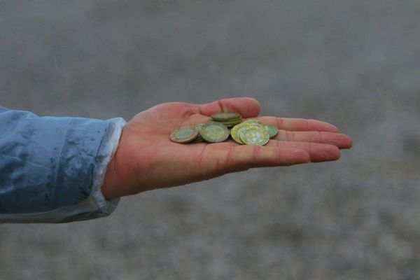 Arama yapıp sadece madeni para bulan bir vatandaş, yağışa aldırış etmeden neredeyse sahili baştan aşağı taradı.