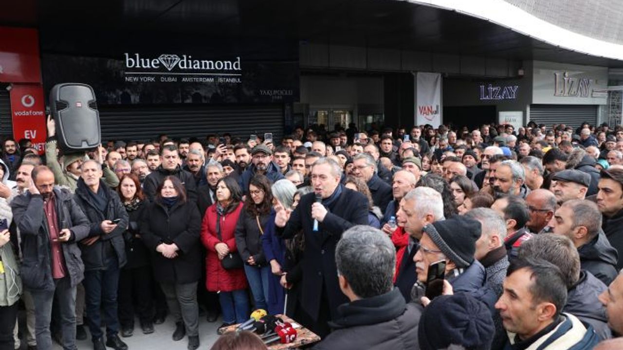 İçişleri Bakanlığı tarafından Van Büyükşehir Belediye Eş Başkanı Abdullah Zeydan'ın görevden uzaklaştırılmasının ardından DEM Parti Eş Genel Başkanları Tuncer Bakırhan ve Tülay Hatimoğulları bugün kente geldi. Bakırhan ve Hatimoğulları, DBP Eş Genel Başkanı Çiğdem Kılıçgün Uçar, DEM Parti Grup Başkanvekili Gülistan Kılıç Koçyiğit, DEM Parti milletvekilleri, görevden uzaklaştırılan Van Büyükşehir Belediye Eş Başkanları Abdullah Zeydan, Neslihan Şedal, Diyarbakır Büyükşehir Belediye Eş Başkanları Serra Bucak, Doğan Hatun ve partililer Cumhuriyet Caddesi'ndeki AVM önüne geldi. Açıklamanın yapılacağı AVM'nin önü polis barikatlarıyla kapatıldı. Caddede slogan atan gruba polis göz yaşartıcı bombayla müdahale edip, bazı kişileri gözaltına aldı.
