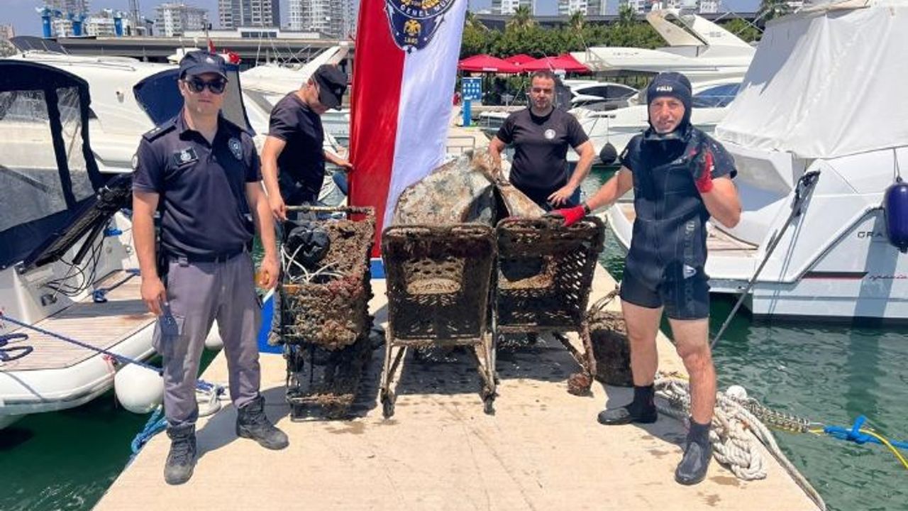 Mersin Emniyet Müdürlüğüne bağlı Deniz Limanı Şube Müdürlüğü Sualtı Grup Amirliğinde görevli 'kurbağa adamlar' tarafından, 'Çevre Haftası' dolayısıyla merkez Yenişehir ilçesindeki marinada dalış etkinliği gerçekleştirildi. Etkinlikte deniz dibi temizliği de yapan ekipler, onlarca atığın yanında 3 adet çürümeye yüz tutmuş bebek arabası da çıkardı. 'Bu kadarına da pes' dedirten olay, görenleri şaşkına çevirirken, çevreye karşı daha duyarlı olunması istenildi.