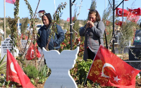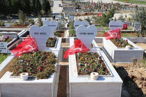 Depremde kaybettiği kızı, damadı ve iki torunu için mezar başında dua eden Ayşe Bulat (66), "Acısı tarif edilmez. Bu acıyı hala yaşıyoruz ve geçmeyecek biliyorum. Geriye bir torunum kaldı. Türkiye'mizde çok acılar yaşandı, inşallah bir daha yaşanmaz. Bizim cennet kuşu yavrularımızı yalnız bırakmayan, bu bayrakları takanlardan, çiçekler ekenlerden Allah bin kere razı olsun" diye konuştu.