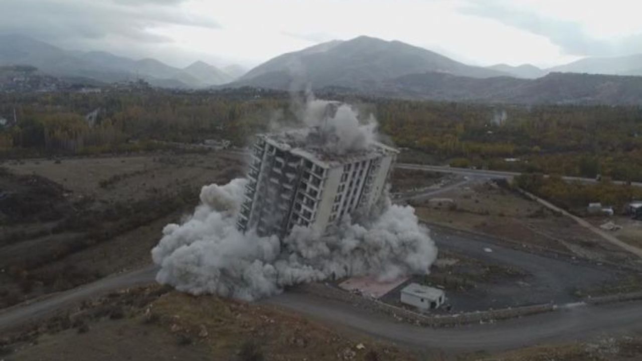 Kahramanmaraş merkezli 6 Şubat'ta yaşanan depremlerde ağır hasar alan illerden biri olan Malatya'da yıkımlar tüm hızıyla sürerken, yüksek katlı binalar da patlayıcı yardımı ile yıkılıyor. Yeşilyurt ilçesine bağlı Yakınca Mahallesi'nde bulunan 16 katlı bir bina da depremde ağır hasar alması nedeniyle bugün dinamitle patlatıldı.