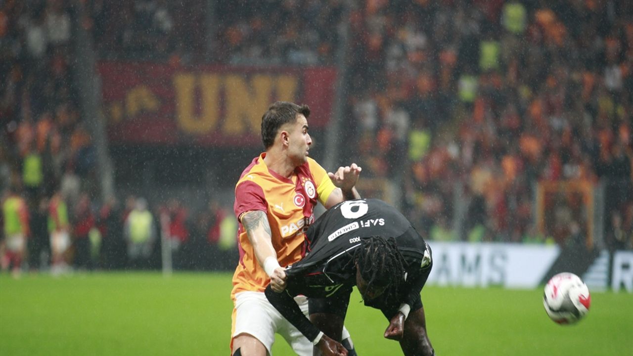 Karşılaşmanın ilk dakikaları orta saha mücadeleleriyle geçerken ilk ciddi atağı Beşiktaş yakaladı. 10’uncu dakikada Cerny’nin kullandığı korner vuruşunda Emirhan’ın etkili kafasında Uğurcan topu kornere çeldi. 12’nci dakikada Beşiktaş öne geçti. Cerny’nin sol kanatta pasında ceza sahsına giren Orkun’un çaprazdan şutunda Uğurcan’dan dönen topu Abraham ağlara gönderdi: 0-1. 26’ncı dakikada Galatasaray korner vuruşunda önemli bir şansı değerlendiremedi. İlkay’ın kullandığı kornerde Abdülkerim’in çevirdiği topu Davinson yakın mesafeden auta gönderdi. Karşılaşmanın 35’inci dakikasında Davinson Sanchez'in ceza sahasına girmeden Rafa Silva’ya arkadan yaptığı müdahale sonrası hakem Yasin Kol, son adam olduğu için Kolombiyalı futbolcuya kırmızı kart gösterdi ve sarı-kırmızılı takım 10 kişi kaldı. Mücadelenin ilk yarısı Beşiktaş’ın 1-0 üstünlüğüyle tamamlandı.