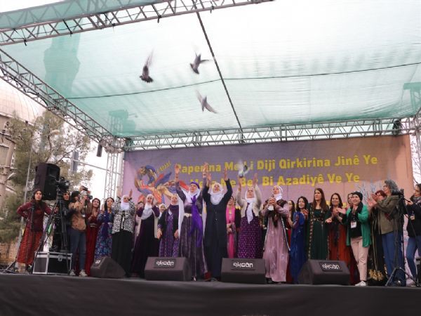 Yenişehir ilçesi İstasyon Caddesi'nde, Dicle Amed Kadın Platformu (DAKAP) öncülüğünde 8 Mart Dünya Kadınlar Günü dolayısıyla 'Kadın kırımına isyan ediyor, özgürlüğe yürüyoruz' sloganıyla miting düzenlendi. Mitinge Halkların Eşitlik ve Demokrasi Partisi (DEM Parti) Kadın Meclisi Sözcüsü Halide Türkoğlu, Diyarbakır Büyükşehir Belediyesi Başkanı Ayşe Serra Bucak Küçük, çeşitli sivil toplum kuruluşu temsilcileri ile çok sayıda davetli katıldı. Mitingde, kadınlar barış güvercini uçurdu.