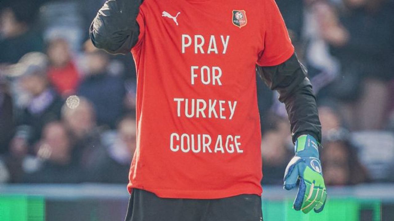 Kahramanmaraş merkezli meydana gelen ve birçok ilde ağır hasarlara yol açan depremler sonrası destek mesajları gelmeye devam ediyor. Fransa Ligue 1'de bugün oynanan Toulouse - Rennes müsabakasından önce Rennes'de top koşturan milli kaleci Doğan Alemdar, ısınmak için sahaya Pray For Turkey (Türkiye için dua edin) yazılı tişörtle çıktı.