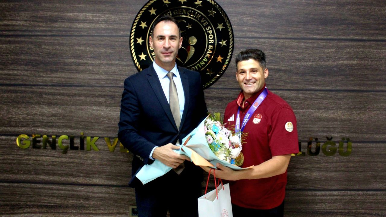 Mersin Gençlik ve Spor İl Müdürü Göksun Öz, makamında ağırladığı milli sporcu ve antrenörüne duyduğu gururu dile getirdi. Öz, Khalvandi'ye hitaben şunları söyledi: