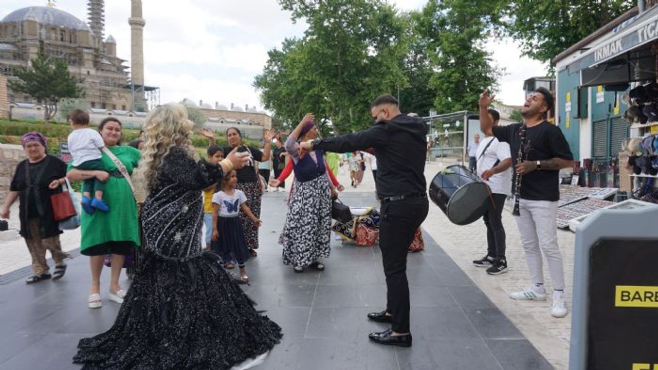 Mimar Sinan'ın ustalık eseri Selimiye'nin gölgesinden kutlamaların yapılacağı Mezitbey Hamamı'na kadar oyun havaları eşliğinde ilerleyen Romanlar, yiyecekler ve içerisi hazırlanana kadar hamam dışında davul ve zurna eşliğinde oyun oynadı.