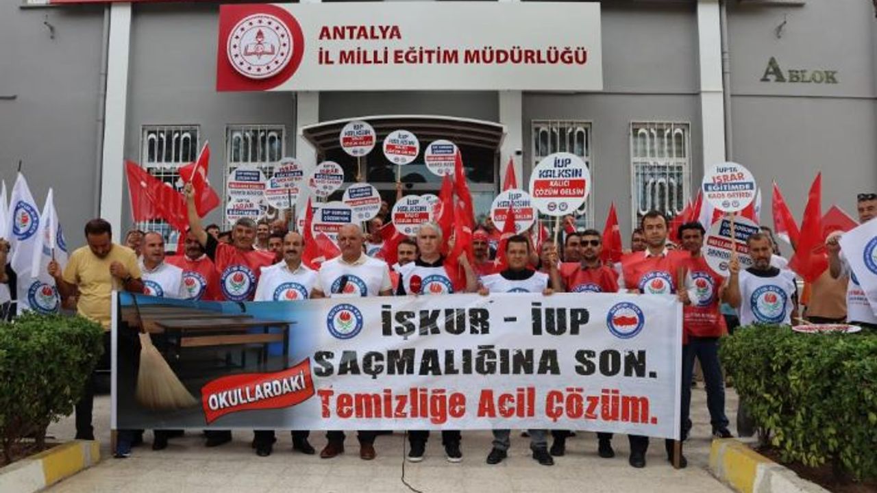 Antalya İl Milli Eğitim Müdürlüğü önünde toplanan grup adına açıklama yapan Şube Başkanı Eyüp Bülent Miran, İUP'nin iş güvencesinden yoksun, adil ve yeterli bir gelir getirmeyen, sosyal güvencesiz bir çalışma biçimi olduğunu belirterek "Bu haliyle okulların personel ihtiyacına kalıcı ve sürdürülebilir bir çözüm sunamamanın ötesinde başlı başına bir emek sömürüsü biçimi olduğu görülmektedir" dedi.