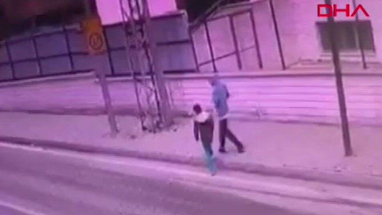 Polis olayla ilgili inceleme başlatırken, olay anı çevredeki bir iş yerinin güvenlik kamerasına yansıdı.