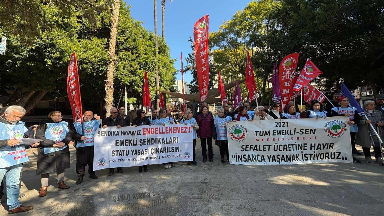 2021 Tüm Emekliler Sendikası Mersin Şubesi öncülünde Yoğurt Pazarı'nda bir araya gelen emekliler, bir kez daha maaşlarına gelen zamları protesto etti. Ellerindeki dövizler, attıkları sloganlarla zam taleplerini bir kez daha haykıran emekliler, bir an önce maaşlarının düzeltilmesini istedi. Burada konuşan Tüm Emekliler Sendikası Mersin Şubesi Başkanı Hüseyin Kurt, 9 Ocak 2026 gününden beri Meclis’te emekli sorunları için nöbette olan CHP’li milletvekillerini kutladıklarını belirterek, "Meydanlardan ve Meclis’ten yükselen ses iktidar ortağı MHP’de yankısını buldu, Genel Başkan Devlet Bahçeli emeklilerin aylıklarının sefalet düzeyinde olduğunu açıkladı. Bugün yapılacak oylamada verilen sözün gereğinin yapılmasını diliyoruz. Önce belki de yeterince anlatamadığımız bir konuya açıklık getirelim. Sürekli olarak en düşük emekli aylığından söz ediyor, bunun yükseltilmesi gerektiğini anlatıyorsunuz, yüksek prim gün sayısına sahip olan emeklilerin haklarını yeteri kadar dile getirmiyorsunuz deniyor bize, açıklamaya çalışalım. Sendikamıza işçi, memur, bağ-kurlu, tarım sigortalı, özel sosyal güvenlik sandıkları emeklileriyle bunların dul ve yetimleri üye olabilirler.Bütün üyelerimiz sendikada eşit haklara sahiptir. Sendikamız emeklilere insanca yaşam koşullarını sağlayacak ekonomik ve demokratik hakları ilerletmek için çalışır. Hedefimiz emeklilerin birleşik güçlü sendikasının hükûmetin ilgili bakanlığıyla toplu sözleşme yapmasıdır. Emeklilerin aylığı TÜİK'in yayınlayacağı ısmarlama çarpıtılmış enflasyon oranlarına göre tespit edilemez. En düşük emekli aylığından sıkça söz ediyoruz çünkü, 1999'da yıllar içerisinde tedricen ABO'nun yüzde 35'e kadar düşürülmesinin yolu açıldı, bu iktidar döneminde 2008 yılında da ABO'nun güncelleme katsayısı düşürüldü. Bu toplumsal adalete sığmaz formülle bağlanan aylıklar her yıl daha da düştü, 2019 yılına gelindiğinde hükümet en düşük sefalet aylığını açıklamaya cesaret edemedi ve taban aylık sistemine döndü. Zorunlu olarak TBMM'den yasa çıkarıp en düşük emekli aylıklarını hazine desteğiyle yükseltip kabul edilebilir düzeye çektiler" dedi.