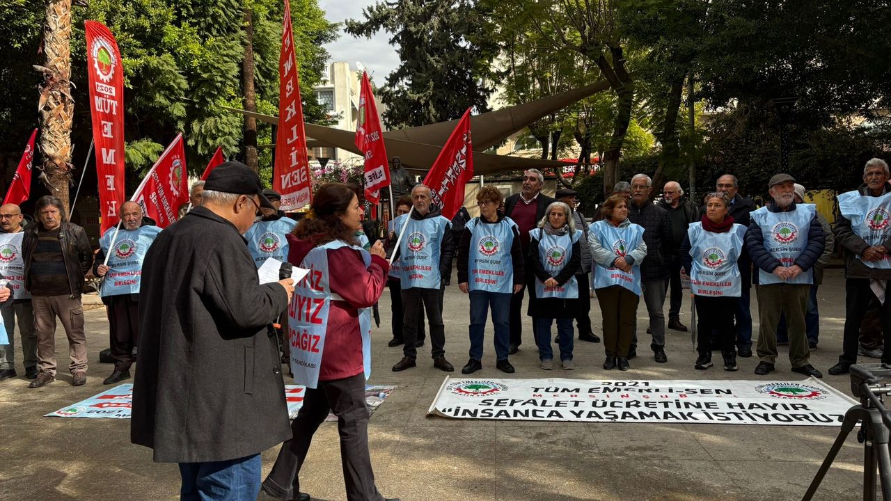 2021 Tüm Emekli-Sen Mersin Şubesi koordinesinde Yoğurt Pazarı'nda bir araya gelen emekliler, attıkları sloganlar, çaldıkları düdükler ve oynadıkları skeçlerle maaşlarına gelen zamlara tepki göstermeye devam etti. Burada emekliler adına açıklamalarda bulunan Şube başkanı Hüseyin Kurt, CHP'nin 9 Ocak 2026 tarihinde emeklilerin sorunların tespiti için araştırma önergesi verdiğini belirterek, "CHP, asgari ücretin 39 bin liraya en düşük emekli aylığının da asgari ücret düzeyine çıkarılmasını uzun zamandır dillendiriyordu. O günden beri de Meclis'te dönüşümlü olarak nöbet tutma eylemine devam ediyor. Nöbet tutma eylemini sürdürerek emeklilerin sokaktaki sesini Meclis'e taşıyan milletvekillerine teşekkür ediyoruz. İktidar dışında kalan tüm partilerin de bu haklı eylemde bir arada olmasını diliyor ve bekliyoruz. Çünkü Türkiye emeklilerinin emekçilerinin sorunları o kadar büyük ki mutfaktan işliğe barınaktan kiraya atölyeden fabrikaya öğrenci yurdundan kreşe tarladan meraya yayladan ovaya ormandan akarsuya ve göllere kadar krizden etkilenmemiş tek bir alan bile kalmadı. Bu kadar büyük sorunların altından tek bir parti, tek bir sendika dernek demokratik kitle örgütü kalkamaz. Bize büyük bir silkinme ve bir araya gelerek güçlerimizi birleştirmekten başka yol yok. Toplumun üretici gücü biziz biz işçi memur çiftçi eğitimci güvenlikçi bilişimci gazeteci zanaatkar sanatçı öğrenci aşçıyız. Ulusun/halkın yüzde doksan dokuzuyuz, hayatı her sabah yeniden kuranlarız" dedi.