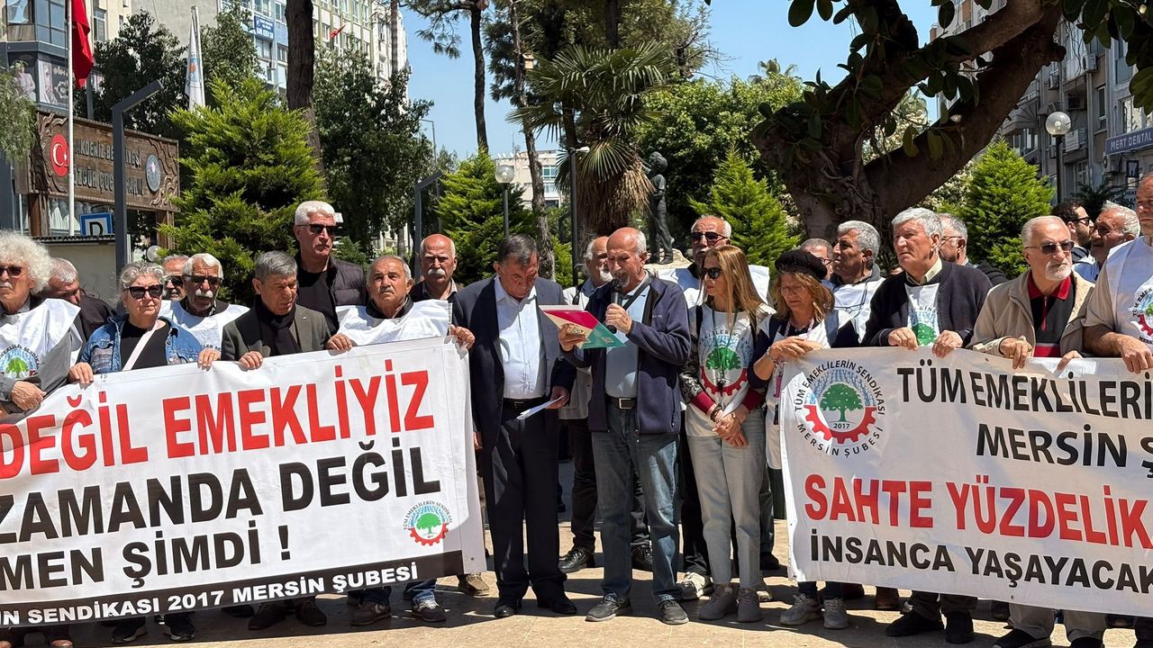 Mersin’de Tüm Emekliler Sendikası Şubesi üyeleri, Özgür Çocuk Parkı’nda düzenledikleri basın açıklamasıyla Türkiye İstatistik Kurumu’nun (TÜİK) açıkladığı Mart 2026 enflasyon verilerine tepki gösterdi. Sendika adına açıklamayı okuyan Ahmet Karakuş, resmi enflasyon rakamlarının halkın günlük yaşamda karşılaştığı fiyat artışlarını yansıtmadığı, özellikle akaryakıt zamlarının genel fiyatlar üzerindeki etkisine dikkat çekildi. Emeklilerin ve dar gelirlilerin giderek yoksullaştığı vurgulanan açıklamada, ekonomik verilerin gerçeği gizlediği öne sürüldü.