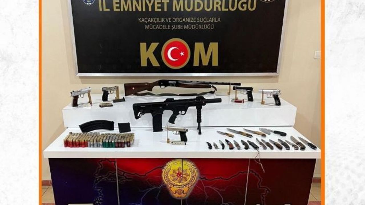 Operasyon kapsamında H.G., T.İ., İ.K., C.P., A.T. ve T.İ. isimli şahısların ikametlerinde arama yapıldı. Ekiplerce 2 adet ruhsatsız tüfek, 5 adet ruhsatsız tabanca, 8 adet şarjör, 184 adet kartuş, 49 adet tabanca fişeği, 18 adet delici bıçak ele geçirildi.