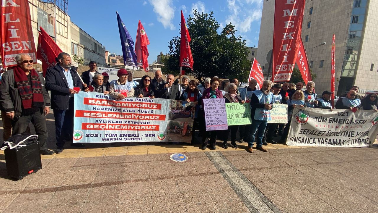 Mersin Defterdarlığı önünde bir araya gelen emekliler, ellerindeki dövizler ve attıkları sloganlarla tepkilerini dile getirdi. Burada grup adına açıklama yapan 2021 Tüm Emekli-Sen Mersin Şubesi Başkanı Hüseyin Kurt, Türkiye'de ilk emekli sendikasının 1995 yılında kurulduğunu, kurulur kurulmaz emekli hareketine yeni bir güçlü ses, yeni bir anlayış getirdiğini belirterek "Emekliler ricacı pozisyondan hakkını talep eden pozisyona geçti. Bu güçlü hak arama bilincinin örgütlü hali olan sendikanın hükûmetleri rahatsız etmesi kaçınılmazdı elbette. Sendikalar defalarca dava açılarak kapatıldı, tekrardan kuruldu. Anayasaya ve ülkemizin de imzacısı olduğu uluslararası hukuka aykırı kapatma kararlarının toplumsal barışa, emekçi dayanışmasına, yüzde doksan dokuzu temsil eden büyük insanlığa hizmet etmediği ve kabul görmediği aşikardır, apaçıktır. Emeklilerin sendika kurmasının önündeki anti demokratik engeller kaldırılmalıdır. Bu kısa girişten sonra emeklilerin sesini Meclis'e taşıyarak 9 Ocak 2026 gününden beri Nöbet Tutma eylemine devam eden CHP'li vekilleri tekrar kutluyor, iktidar dışında kalan partilerin de bu eyleme aktif destek vermesini talep ediyoruz. Sokakta ve alanlarda emeklilerin, Meclis'te vekillerin ısrarlı eylemleri o kadar etkili oldu ki iktidarın fiili ortağı bile emeklilerin aylıklarının sefalet düzeyinde ve kabul edilemez olduğunu dile getirdi. Söz yetmez eylem gerek bu sözün sahipleri eğer söylediklerinde samimi iseler hemen Meclis'e en düşük emekli aylığının asgari ücretin altında olamayacağını, asgari ücretin de insanca yaşamaya yetecek düzeye çıkarılması gerektiğini teklif hâline getirsinler yapılacak oylamada kim emekçinin, emeklinin dul ve yetimin yanında; kim dolar milyarderlerinin holdingleşmiş tarikatların, rantiyenin yerli ve yabancı tefecilerin yanında belli olsun. Tekrar ediyoruz, iktidarın sürdürdüğü dışa bağımlı neo-liberal ekonomiyle, tarımı ve küçük orta sanayiyi çökerten borç faiz özelleştirme borsa sistemiyle yaratılan ağır tahribat o kadar büyük ki, tek bir parti, tek bir sendika, tek bir demokratik kitle örgütü bunun altından kalkamaz. Güçlerimizi birleştirmekten başka çaremiz yok. Eminiz ki, emekçiler bu iradeye sahip olduklarını kanıtlayacaklardır" dedi.