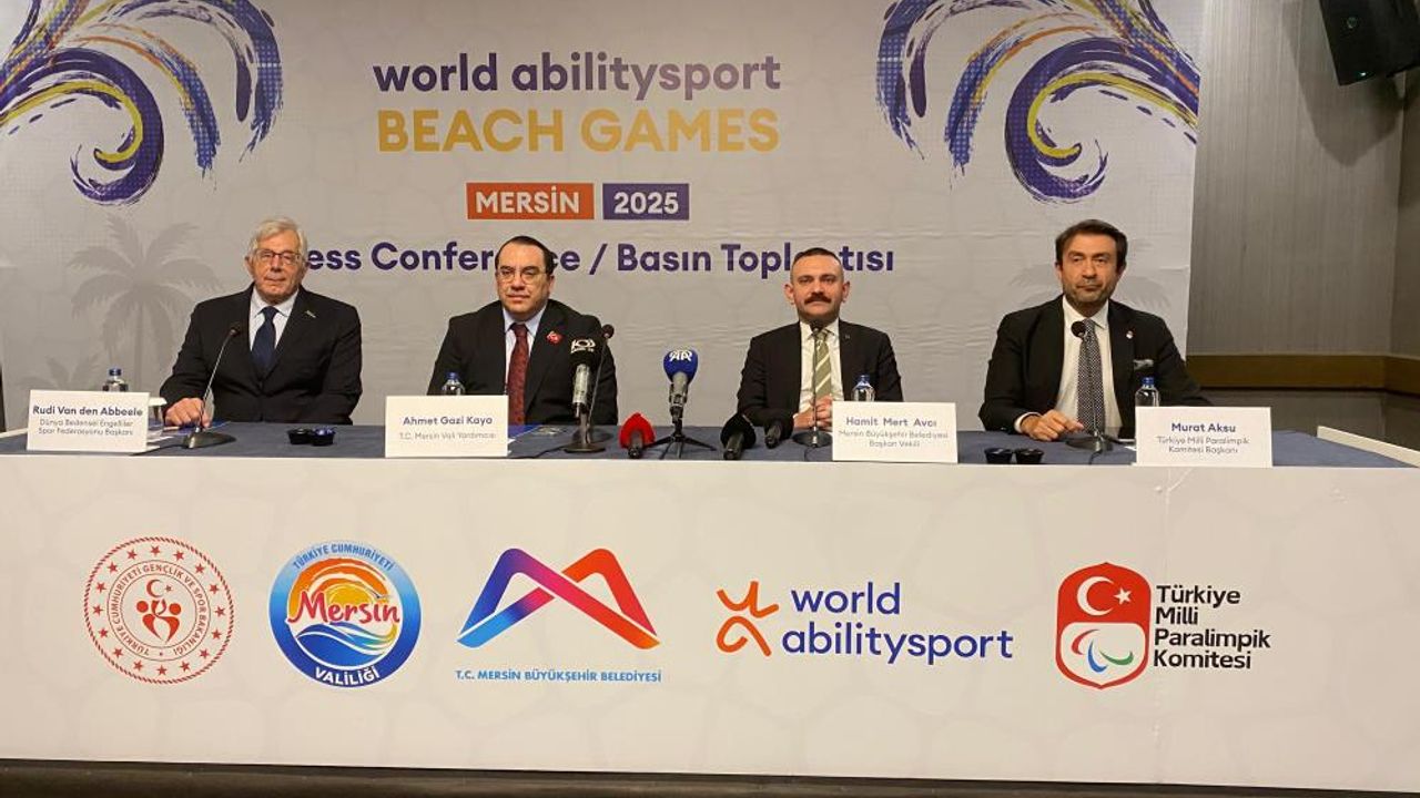 Türkiye Milli Paralimpik Komitesi (TMPK) tarafından, Dünya Bedensel Engelliler Federasyonu iş birliğiyle düzenlenecek “Mersin 2025 Dünya Bedensel Engelliler Plaj Oyunları”nın basın toplantısı, kentteki bir otelde gerçekleştirildi. Toplantıya Mersin Vali Yardımcısı Ahmet Gazi Kaya, Türkiye Milli Paralimpik Komitesi Başkanı Murat Aksu, Dünya Bedensel Engelliler Spor Federasyonu Başkanı Rudi Van den Abbeele ve Mersin Büyükşehir Belediye Başkan Vekili Hamit Mert Avcı katıldı.