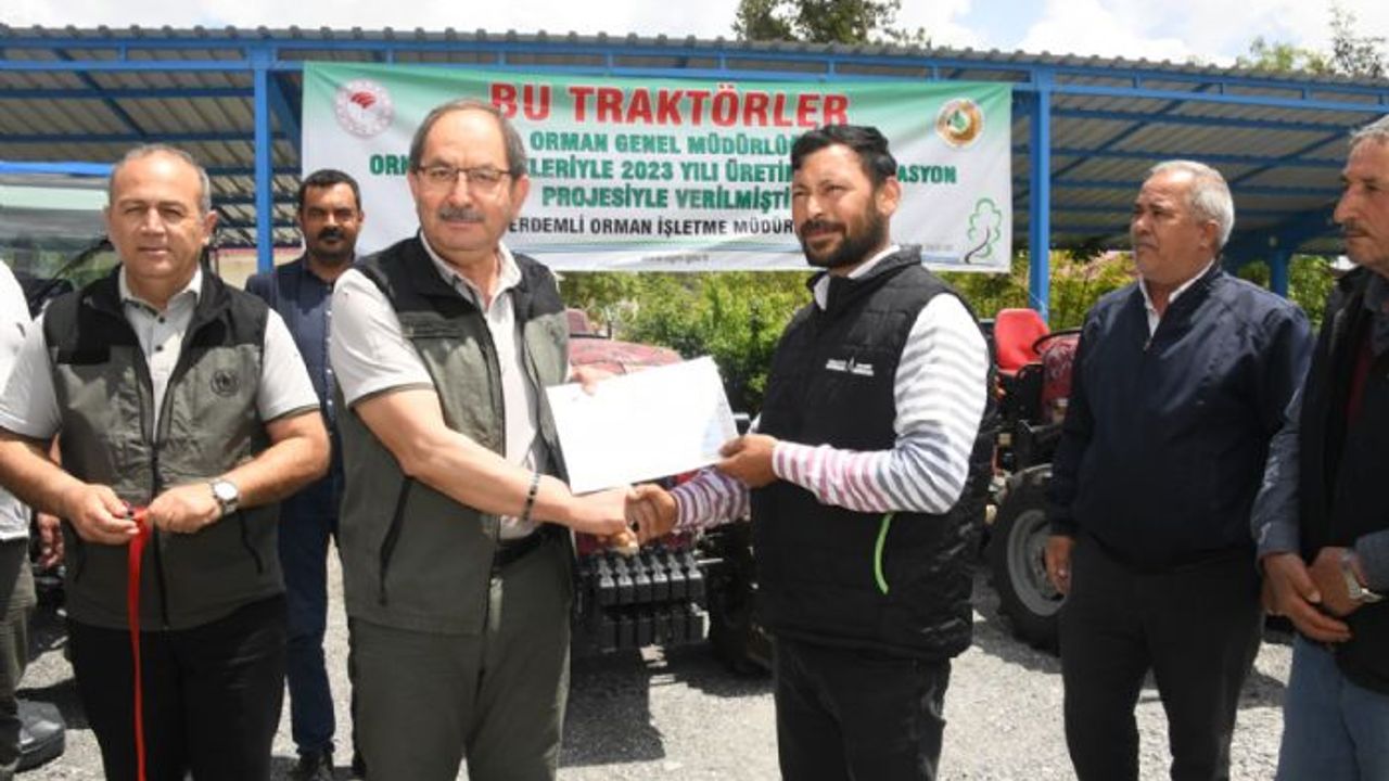Mersin Orman Bölge müdürlüğünden yapılan açıklamaya göre, traktörler vatandaşlara Erdemli Aydınlar Mahallesinde düzenlenen törenle verildi. Törene, Mersin Orman Bölge Müdürü Mustafa Yalçın, ORKÖY Şube Müdürü Necmi Poscu, Erdemli Orman İşletme Müdürü Murat Körlü ve Orman Teşkilatı Personeli ile vatandaşlar katıldı.
