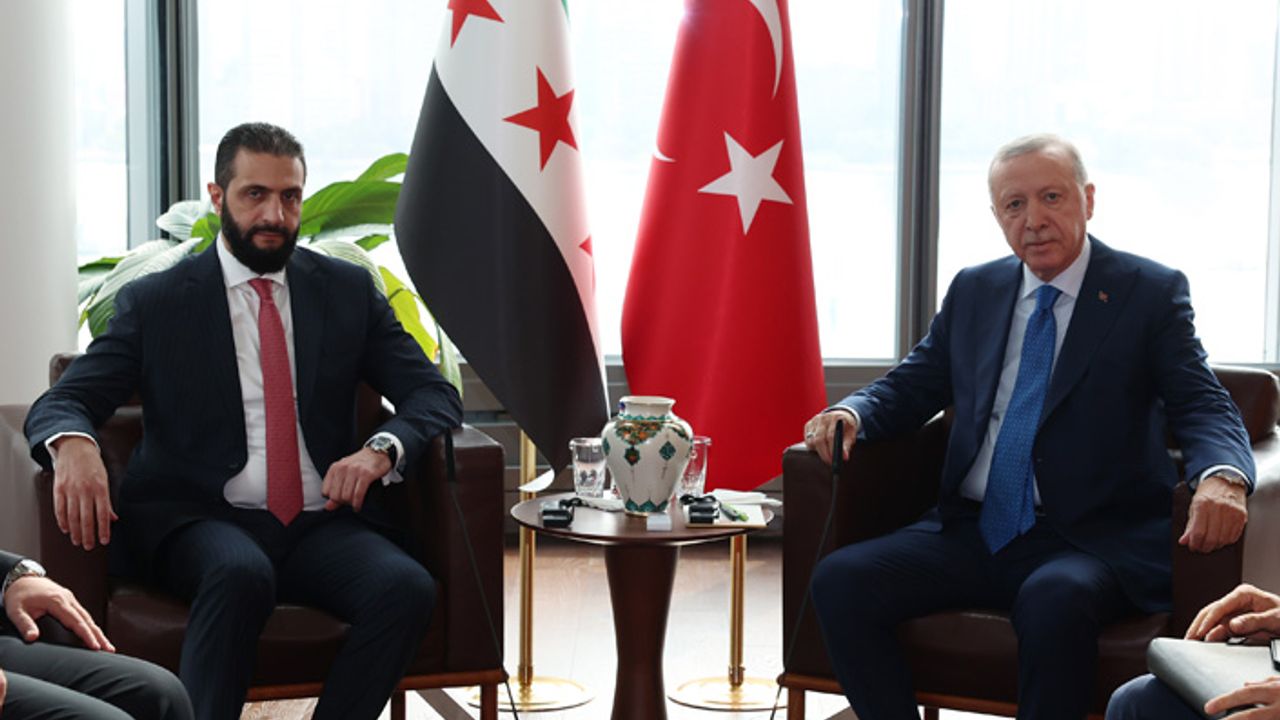 Toplantıda Türkiye–Suriye ilişkileri ile bölgesel meseleler masaya yatırıldı. Erdoğan, görüşmede Suriye’ye uygulanan tüm yaptırımların en kısa sürede kaldırılmasını beklediklerini ifade etti. Türkiye’nin Suriye’nin toprak bütünlüğü ve egemenliği esasına dayalı her girişimi olumlu yaklaştığını söyledi.
