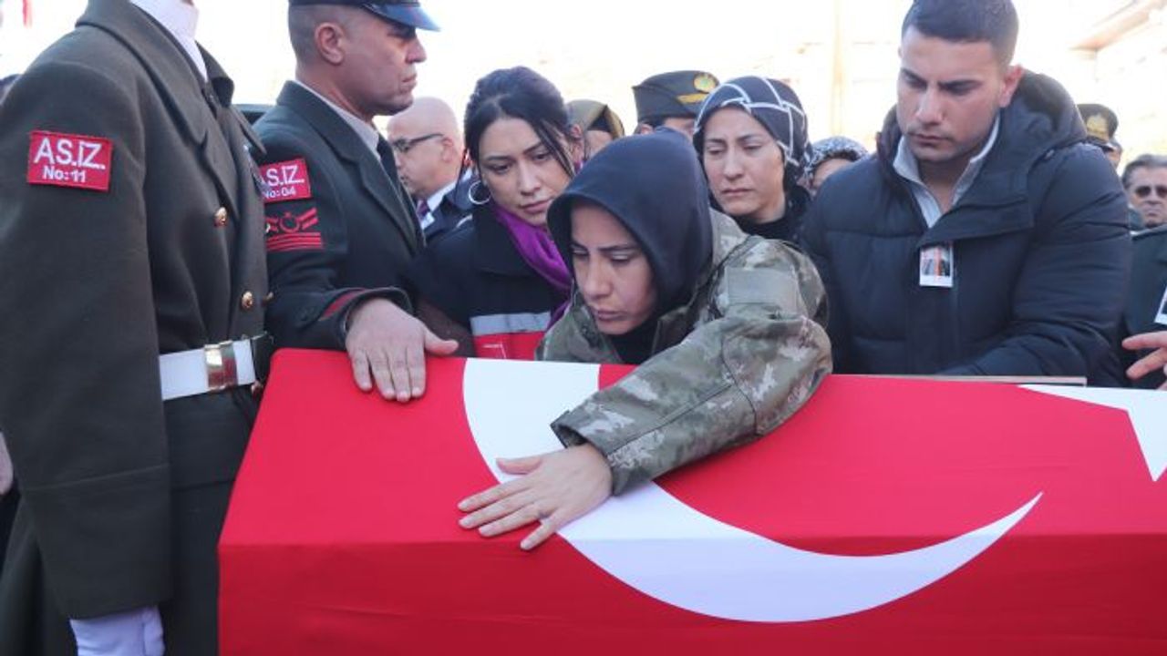 Törene askeri üniformayla katılan Çilem Serinkan, eşinin Türk bayrağına sarılı tabutuna dakikalarca sarılırken, alana tekerlekli sandalyeyle getirilen şehidin 23 yaşındaki engeli kardeşi Büşra Serinkan da ağabeyinin fotoğrafına bakarak gözyaşı döktü. Şehit askere son görevlerini yapan eşi ve kardeşinin yaşadıkları acı görenlerin içini sızlattı.