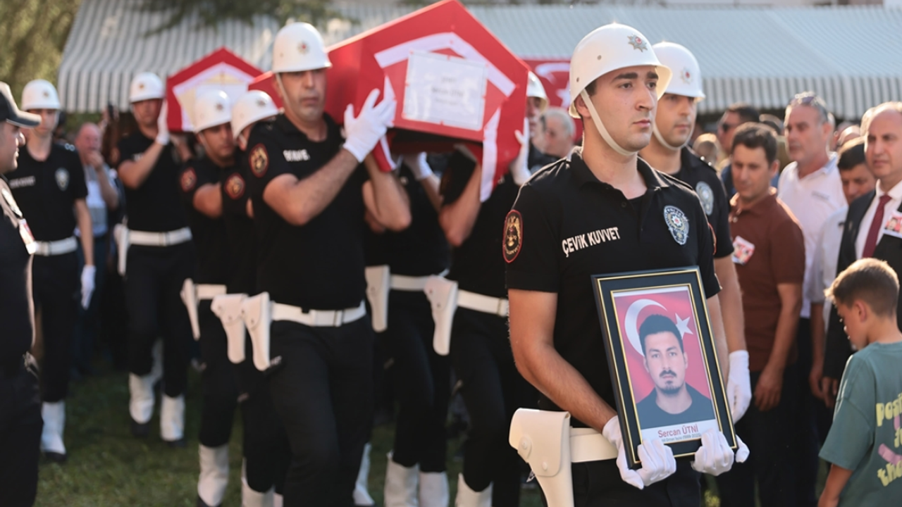 Türk bayrağına sarılı tabutlar, mesai arkadaşlarının omuzlarında tören alanına getirildi. Saygı duruşunun ardından şehitlerin öz geçmişleri okundu ve dualar edildi.