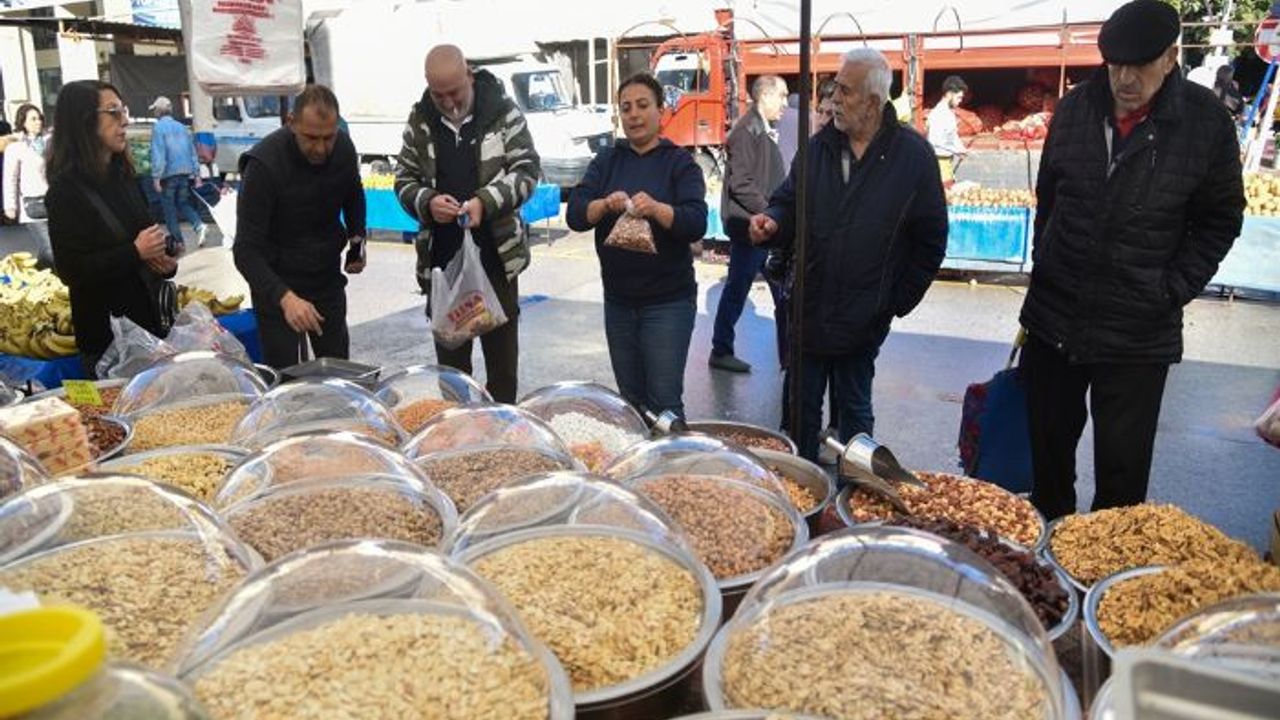 Yeni yılı evinde kutlayacak ailenin yaklaşık 1500 lira harcama yapması kaçınılmaz olurken, çeşidi bol sofralar için bu rakam 3 bin lirayı aşıyor. Pazarda kuruyemiş tezgahı bulunan Esin Özçekli, yılbaşı alışverişlerinin satışlara olumlu yansıdığını söyledi. Yeni yılı ailesiyle evde karşılamak isteyenlerin kuruyemiş tüketimine önem verdiğini anlatan Özçekli, "Müşterilerimiz bütçelerine göre alışveriş yapıyor. Genelde karışık çerez satılıyor. Leblebi, fıstık, çekirdek satışı fazla. Geçen seneye göre fiyatlar arttı" dedi.