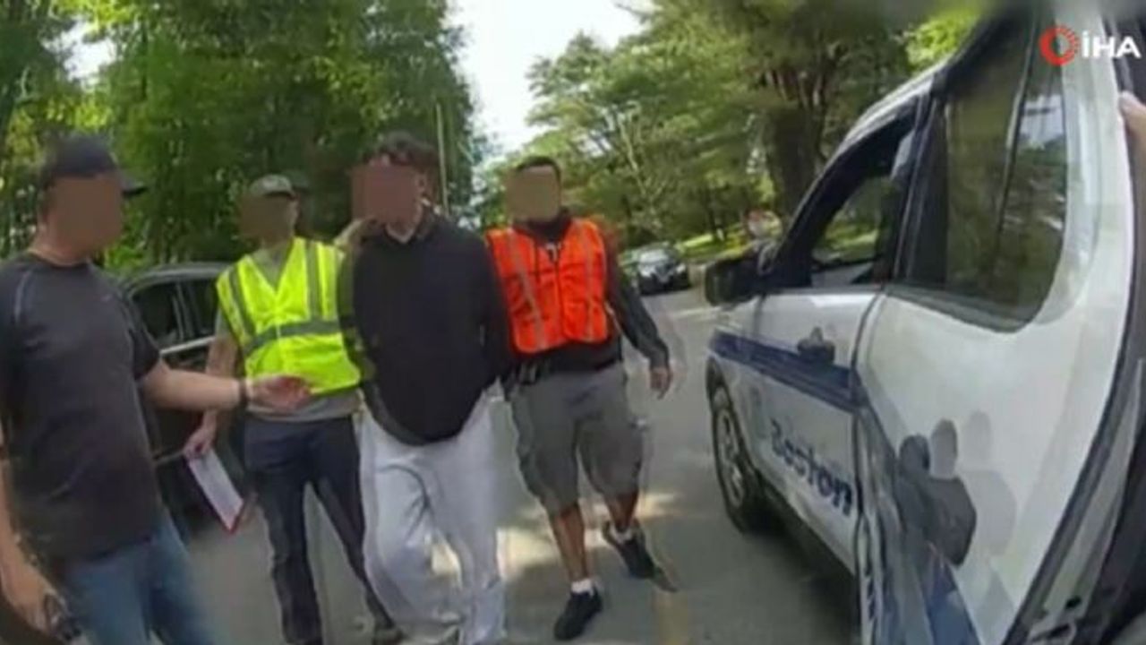 Boston polisinin vücut kamerasından anbean kaydedilen görüntülerde, ilk olarak Cihantimur'un yakalandığı anlaşılıyor.