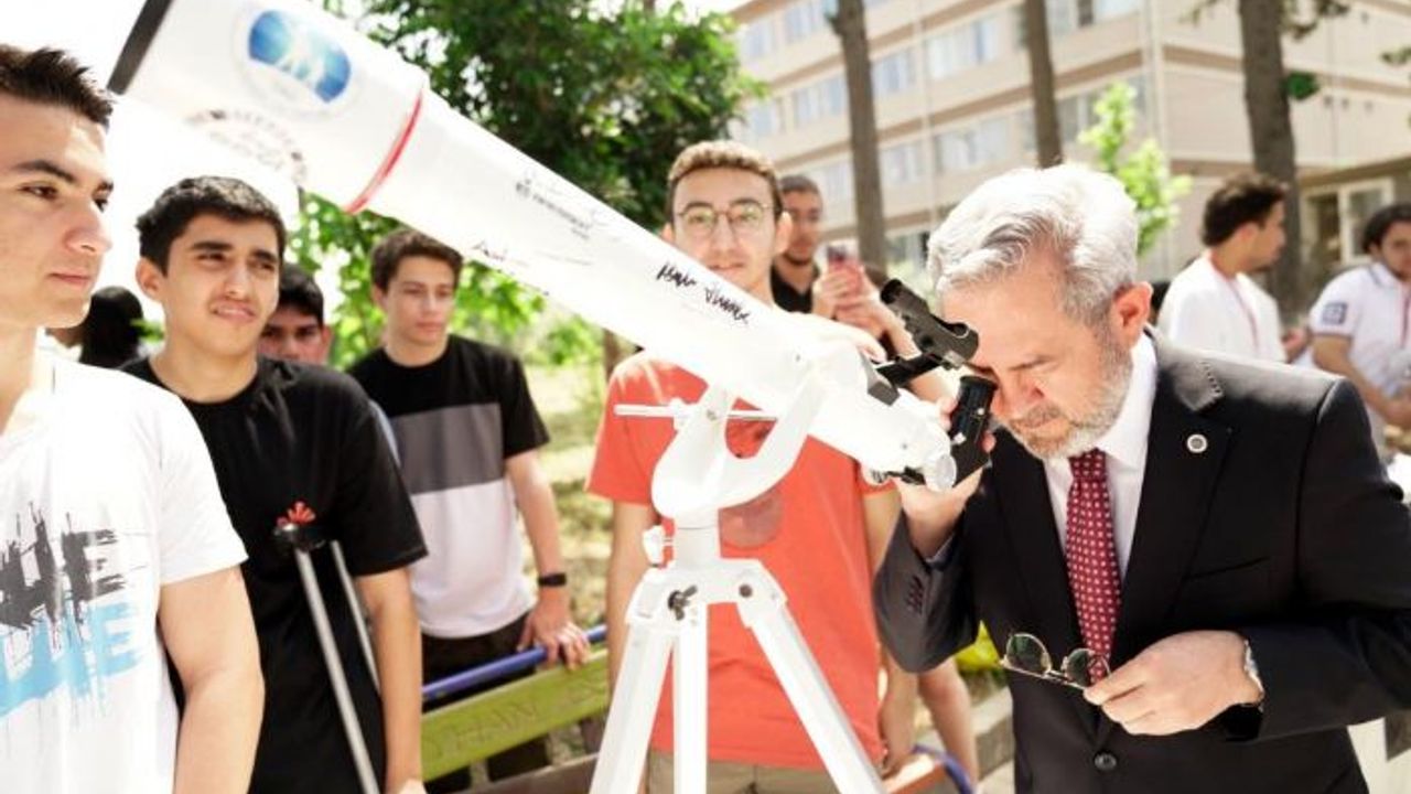 Programa sınıflarından, CERN'ün ödül olarak takdim ettiği teleskop önünden bağlanan Red Apple Takımı üyesi öğrenciler de başarılarından ve hedeflerinden bahsetti.