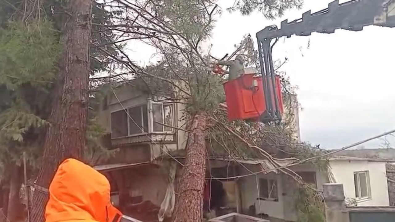 Yıkılan ağaçlar belediye ekiplerince kaldırıldı.