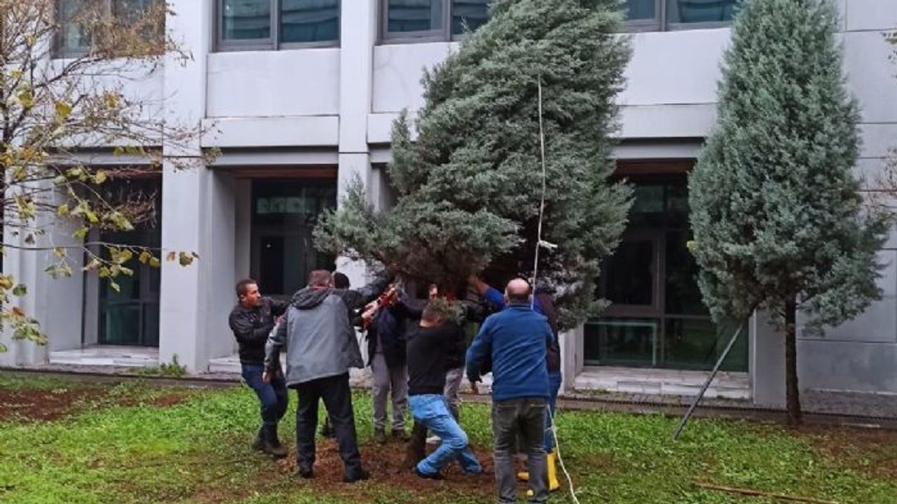 Bu ağaçlardan 35 tanesi köklerinden ayrıldığı için kesilmek zorunda kalıp, 68 ağaç ise destek yapılarak tekrar ayağa kaldırıldı.