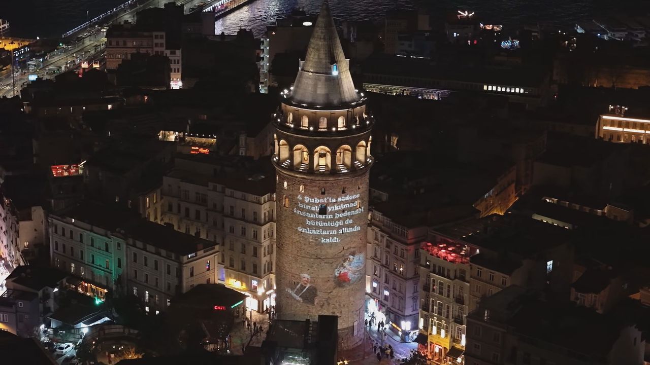 Kahramanmaraş'ta 6 Şubat 2023'te saat 04.17'de meydana gelen 7.7 büyüklüğündeki depremin 3'üncü yıl dönümü nedeniyle Galata Kulesi'nde video gösterimi gerçekleştirildi. Türkiye Beyazay Derneği tarafından düzenlenen etkinlik dronla havadan görüntülendi.