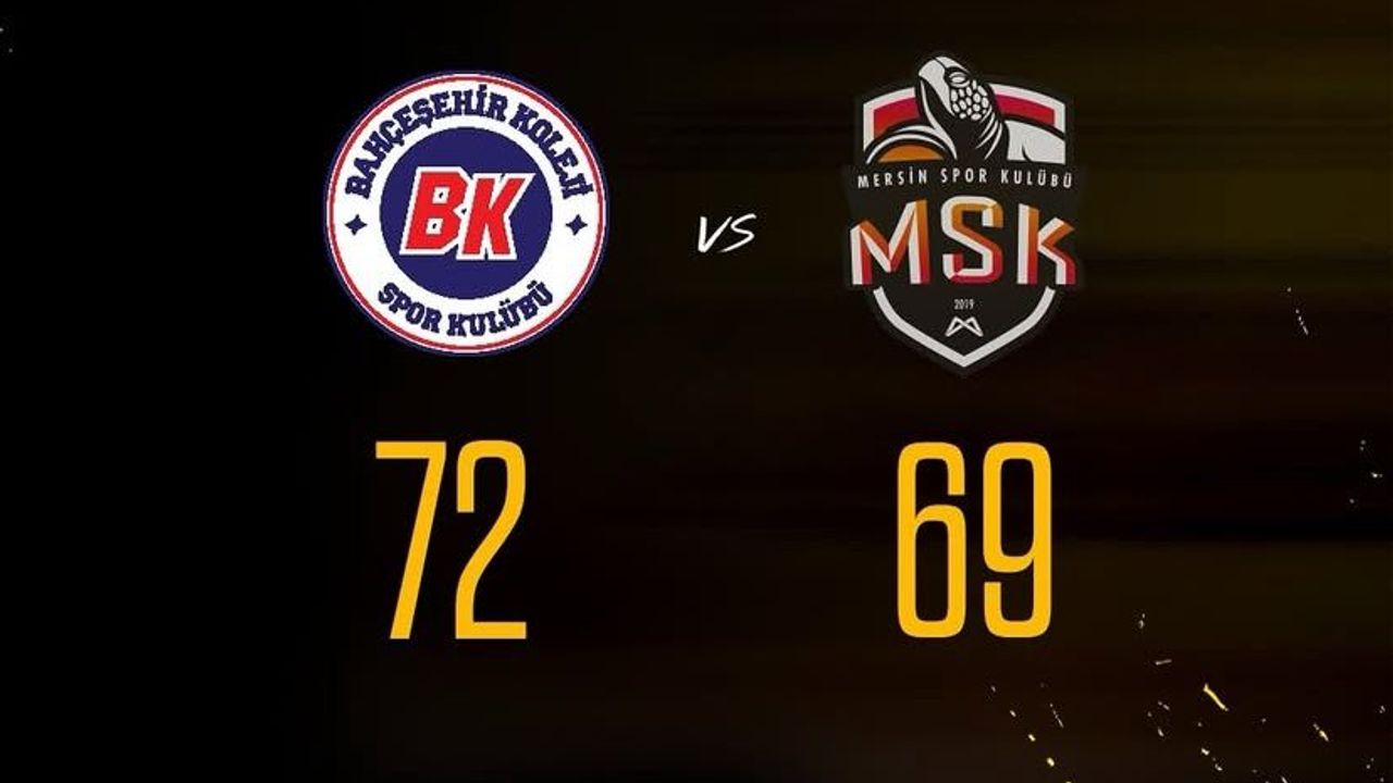 Türkiye Sigorta Basketbol Süper Ligi 3. haftasında Sinan Erdem Spor Salonu'nda karşı karşıya gelen Mersin Spor Kulübü (MSK) ile Bahçeşehir Koleji arasındaki mücadelede nefesler tutuldu. Ev sahibi Bahçeşehir Koleji parkeden 72-69’luk skorla galip ayrıldı.