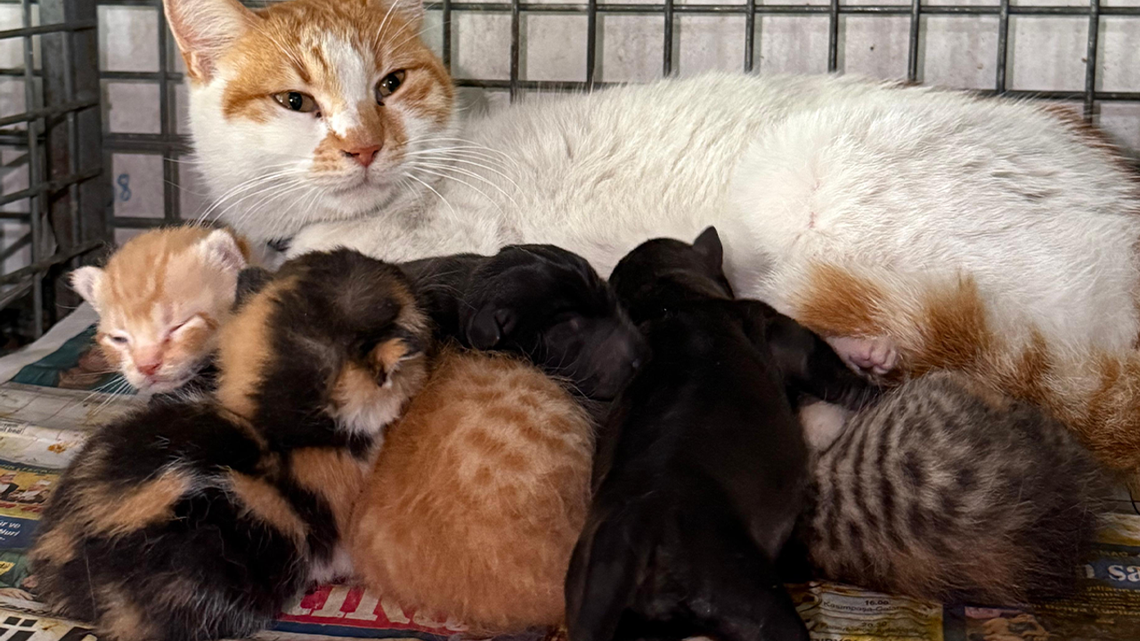 Öte yandan barınakta yaşanan anlar kameralara da yansıdı. Görüntülerde yavru köpeklerin, yavru kedilerle birlikte anne kedinin yanına sokularak süt emmeye çalıştığı yer aldı.