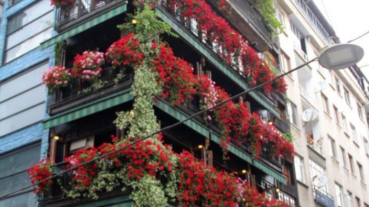 Giresun Gazi Caddesi'nde yaklaşık 10 yıl önceden başlayan çalışmalarla apartmanın camları hariç her yerini rengarenk çiçekler kaplarken, içerisi ise adeta etnografya müzesini andırıyor.