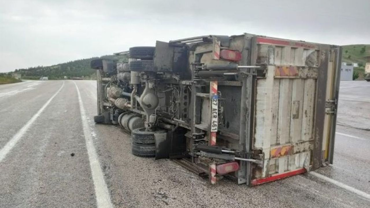 Abdulkadir A. idaresindeki 27 ACR 461 plakalı kamyon sürücünün direksiyon hakimiyetini kaybetmesi sonucu yan yattı. Meydana gelen kazayı sürücü yara almadan atlattı. Bir süre trafik akışının aksadığı yol daha sonra ulaşıma tamamen açıldı.