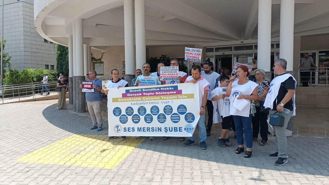 Mersin Üniversitesi Tıp Fakültesi Hastanesi önünde bir araya gelen SES Mersin Şubesi üyeleri, tolu sözleşmedeki taleplerini dile getirdi. Burada grup adına açıklama yapan SES Mersin Şube Eşbaşkanı Sevgi Başkavak, üniversite hastanelerinin sağlık hizmetlerinin önemli parçası ve nitelikli sağlık hizmeti üretiminin de en belirleyici unsurlarından olmasına rağmen sağlık sistemi içerisinde üvey evlat olarak görüldüğünü belirterek, “Ülkenin her tarafına gönderilen hekimlerin yetiştirildiği, tedavi edici sağlık hizmetlerinde sevk zincirinin en son basamağı, dünya çapında isim yapmış saygın tıp insanlarının bilimsel ve özerk hareket edebilmeleri sayesinde ülkemizde kamusal sağlık hizmetinin ileriye taşınmasında itici bir rol oynayan kurumlarımız bugün borç batağından çıkmak için mücadele etmektedir. Üniversite hastanelerinin mali, idari ve bilimsel özerkliği Sağlık Bakanlığı tarafından adeta kuşatılmış üniversite hastanelerinin Sağlık Bakanlığına bağlanması için her türlü yasal zemin oluşturulmaya başlanmıştır. Devlet üniversite hastanelerimizin yeniden, ülkemizde yaşamakta olan herkese, parasız sağlık hizmeti sunabilecek duruma gelmesi için kaynağı genel bütçe olmak üzere, tüm borçlarının ödenmesi ve daha fazla gecikmeden bütün gereksinimlerinin karşılanması gerekirken bu durum devlet üniversite hastanelerinin Sağlık Bakanlığına bağlanması için bir fırsat olarak görülüyor. Sağlık Bakanlığı Marmara Üniversitesi Tıp Fakültesi örneğinde olduğu gibi geçmiş yıllarda üniversite hastanesinin borcunu kapatıp bir iş birliği protokolü ile üniversitenin özerkliğine kayyum atamıştı. Sağlık hizmet sunumu doğrudan hasta başvurusu ile değil üçüncü basamak sağlık hizmet sunumu şeklinde olması, hastaların 1. ve 2. basamaktan gelmesi gereken ve temel görevi eğitim, öğretim ve araştırma olan devlet üniversite hastanelerimiz bu kimliğinden çoktan çıkarılmış ve devlet hastanesi kimliğine sokulmuştur” dedi.