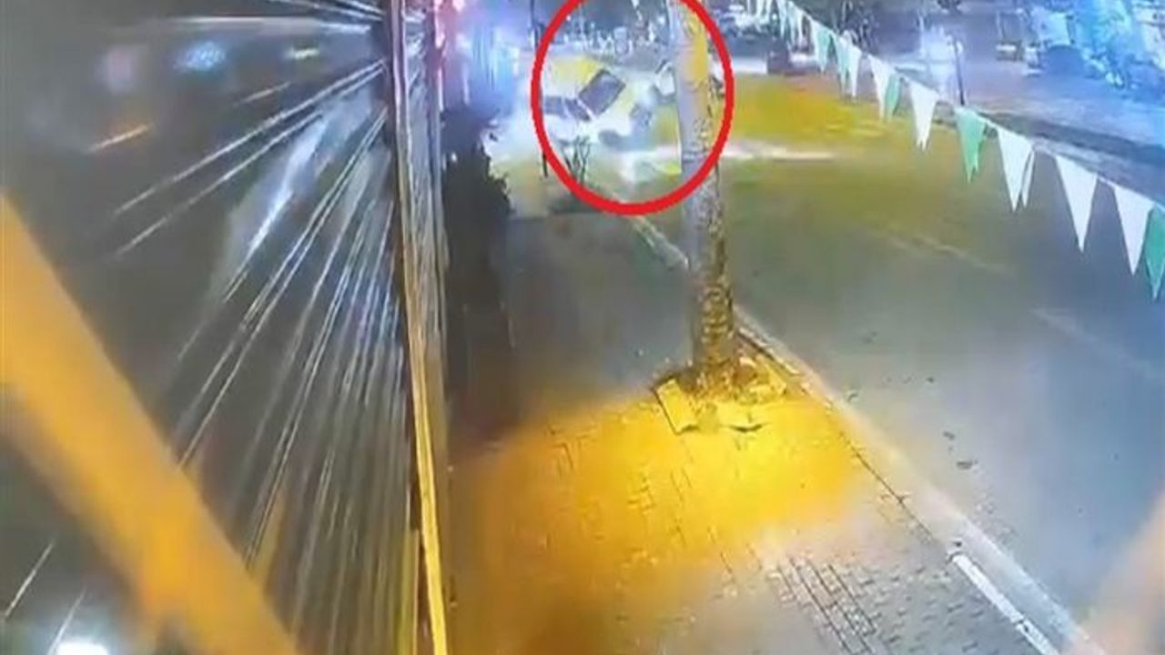 Sürücü ile yanındaki Erhan Korkudan'ın şans eseri yaralanmadığı kaza, güvenlik kamerasına saniye saniye yansıdı. Görüntülerde, kırmızı ışık yanmasına rağmen sürücünün aracını yavaşlatmadığı, kontrolden çıkan aracın yan yatarak önce sinyalizasyon direğine, ardından da takla atıp yan dönerek ağaca çarptığı yer aldı. Kazayla ilgili inceleme başlatıldı.