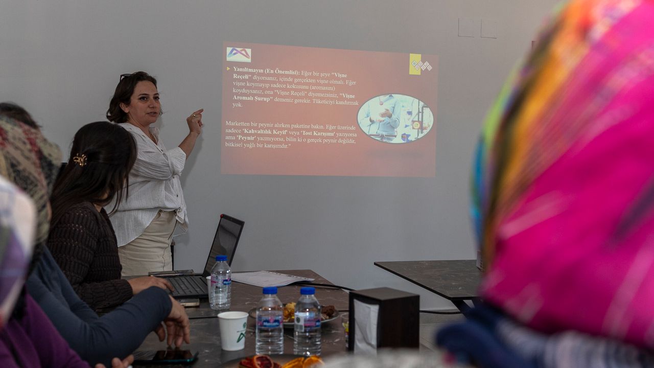 Program kapsamında Büyükşehir bünyesindeki gıda mühendisleri Dilara Aytuttu ve Tuğba Karakış katılımcılara gıda terimleri, gıda ismi ve mevzuata uygun kullanım, etiket okuma ve etiket içeriklerinin hazırlanması, ambalajlama şartları, muhafaza teknikleri ve gıdalarda alerjen bilgisi gibi konularda bilgilendirme yaptı. Ayrıca üretim, son kullanma tarihi ve tavsiye edilen tüketim tarihleri arasındaki farklar ele alınarak, bu bilgilerin tüketici güveni açısından önemi anlatıldı. Kısa süre önce Hamzabeyli ve çevre mahallelerdeki üretici kadınlara yönelik personel hijyeni, makine ve ekipman kullanımı ile iş güvenliği konularında eğitimler de veren Büyükşehir, gıda üretim sürecinin her aşamasında üretici kadınları desteklemeyi sürdürecek.