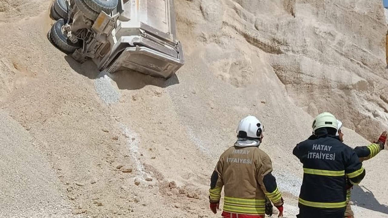 Olay, Antakya ilçesine bağlı Kuruyer Mahallesi’nde meydana geldi. Edinilen bilgilere göre, kum ocağında çalışan hafriyat kamyonu henüz bilinmeyen bir nedenle devrilerek yan yattı. Kazada kamyonun içinde sıkışan sürücü için çevredeki çalışanlar durumu 112 Acil Çağrı Merkezi’ne bildirdi.