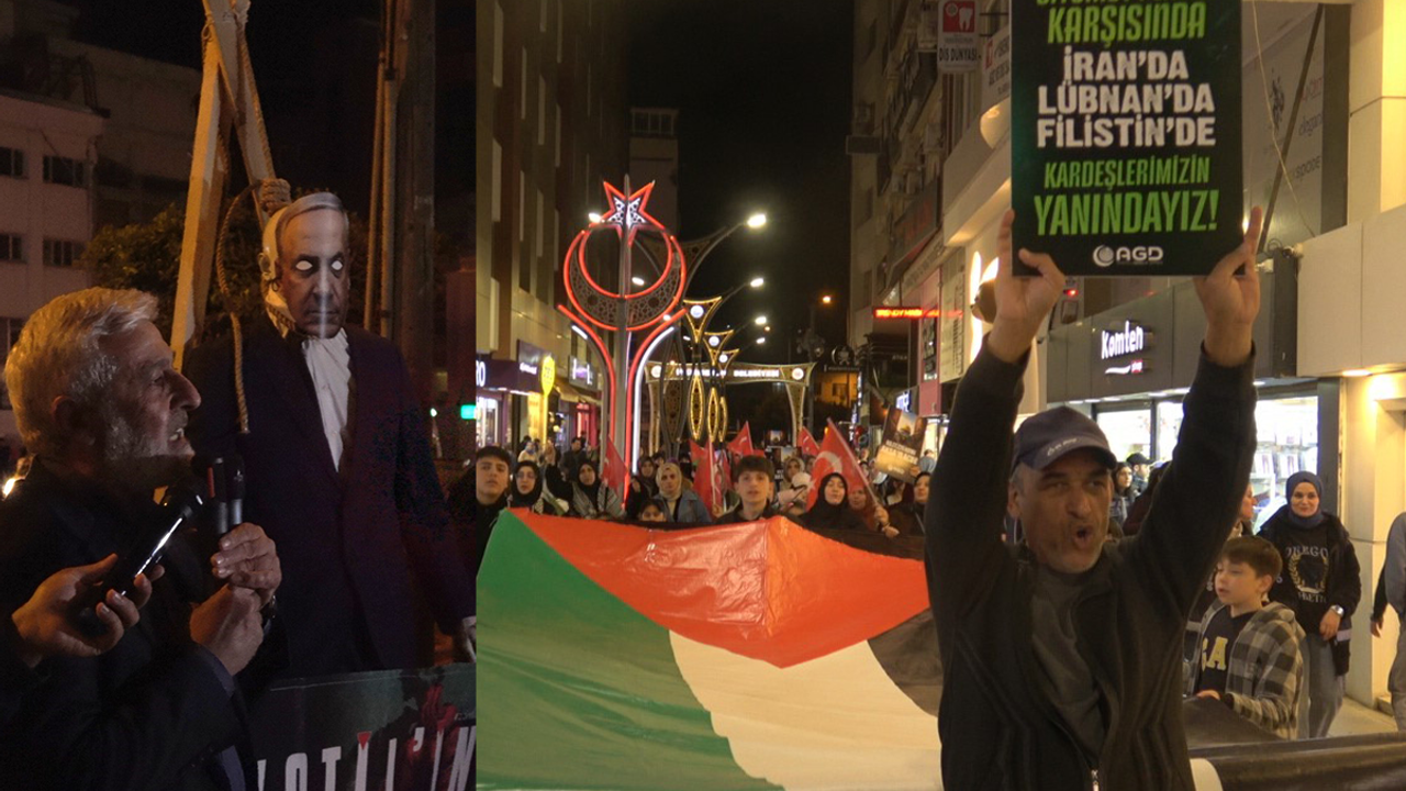 İskenderun ilçesinde akşam saatlerinde bir grup, Orta Doğu’daki gelişmelere tepki göstermek için sokakta buluştu. Etkinlik bir sivil toplum kuruluşu tarafından organize edilirken çok sayıda vatandaş katıldı. Yürüyüş Fatih Cami önünden başlayarak şehir içindeki Ulu Cami ibadet noktasına kadar ilerledi. Katılımcılar ellerinde çeşitli bayraklar ve pankartlarla yürürken, yol boyunca sloganlar attı. Güzergahın sonunda yapılan kısa konuşmalarda, bölgede hayatını kaybedenler anıldı ve topluca dua edildi. Vatandaşlar, kurdukları idam sehpasında İsrail Başbakanı Benjamin Netanyahu’nun cansız mankenini "idam" ederken fotoğraflarını ayaklar altına alarak ezdiler. Program, kalabalığın dağılmasıyla birlikte sonlanırken yürüyüşe kucağında çocuğu ile birlikte katılan Fatih Kandemir, "Filistin başta olmak üzere; Doğu Türkistan, İran, Lübnan'da bir haksızlık, bir zulüm var. Orada çocuklar öldürülüyor, ölüyorlar. Bizim çocuklarımızın onlardan bir farkı yok, biz anne babayız ve bir anne babanın hissettiğini az çok anlayabiliyoruz. İnsanın dili, dini, ırkı ne olursa olsun bunun karşısında durmamız gerekiyor. Çünkü doğru olan budur. Dünyayı bu şekilde şantajla yöneten insanlar var. Bunların karşısında birilerinin durması lazım. Eğer durmazsa dünya daha kötü bir yer haline gelecek. Ben şuna inanıyorum; 'bir insanın dünyaya geliş amacı dünyayı daha güzel bir yer haline getirmektir.' Bu olmalıdır. Maalesef üç maymun oynayan insan çok fazla. Ama doğrunun, Hakk'ın yanında olmak çok değerli bir şey" dedi.
