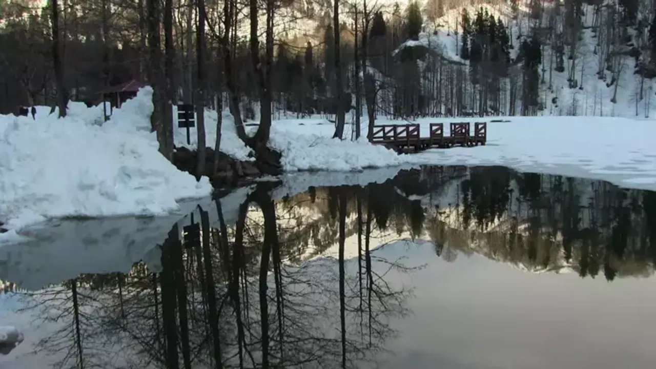 Borçka ilçesine 27 kilometre mesafede, Karçal Dağları’nın kuzeybatısında deniz seviyesinden 1550 metre yükseklikte yer alan Karagöl, eşsiz doğasıyla ziyaretçilerini ağırlıyor. Bozulmamış doğası, yürüyüş parkurları ve kamp alanlarıyla doğa tutkunlarının vazgeçilmez adreslerinden olan Karagöl’de, etkili kar yağışı sonrası özellikle geceleri hava sıcaklığının sıfırın altına düşmesiyle göl yüzeyi kısmen buz tuttu. Donan göl yüzeyi ve ormanları kaplayan kar örtüsüyle seyrine doyumsuz manzaralar oluştu. Buz tutan gölü ziyaret edenler manzaranın keyfini çıkardı.