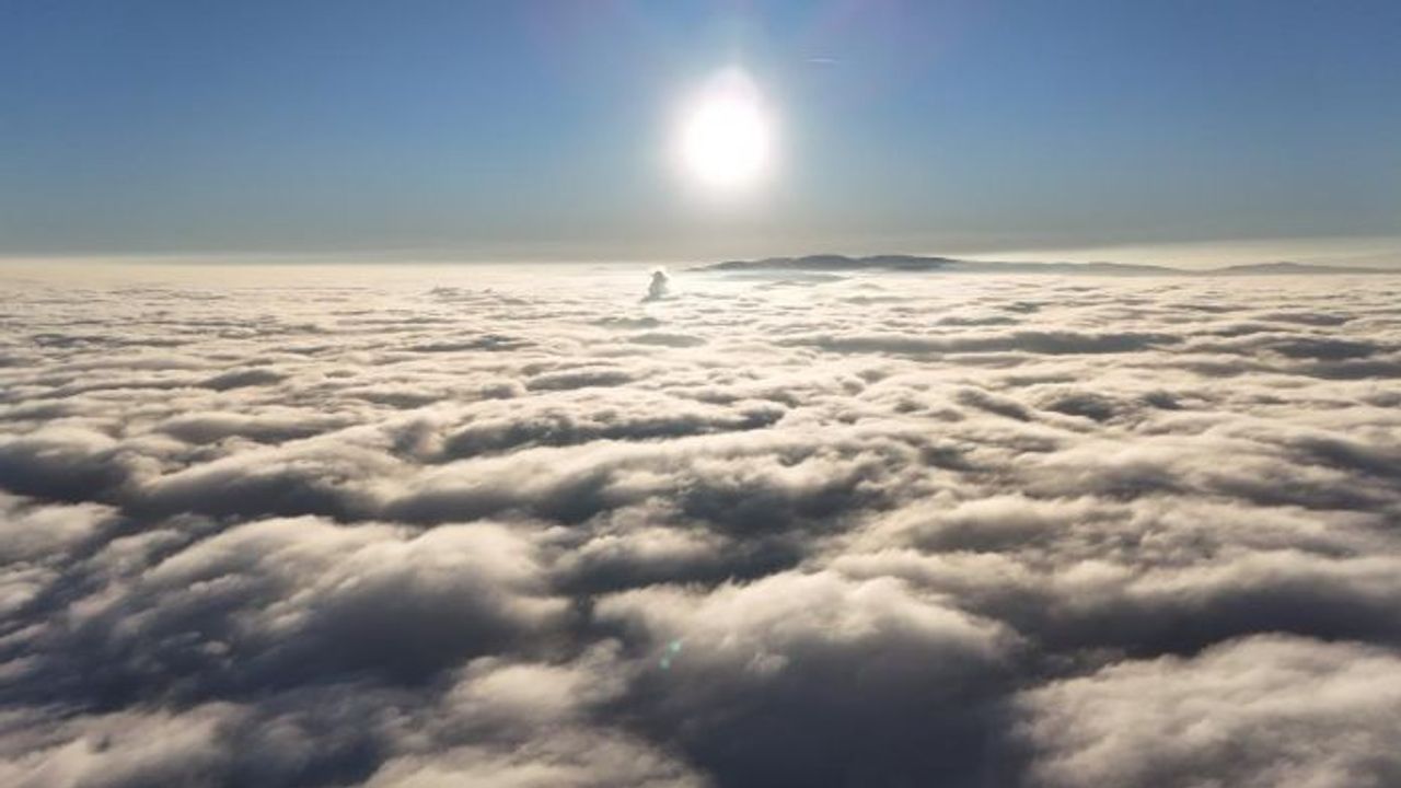 Şehir merkezini tamamen kaplayan sis tabakası, güneş ile birleşerek bir doğa şölenine dönüştü. Sis denizi üzerinde yükselen güneş, beyaz örtüyle bütünleşerek seyrine doyulmaz bir atmosfer sundu. Yaklaşık 500 metre yükseklikten dronla kaydedilen bu görüntüler, şehri sisle kaplayan manzarayı gözler önüne serdi.