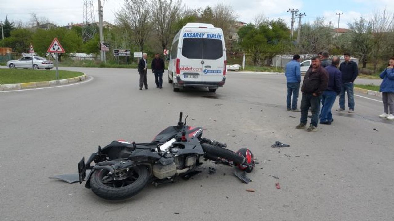 Kaza, Yunus Emre Mahallesi TOKİ Kavşağında meydana geldi. Edinilen bilgiye göre, şehir merkezi istikametine seyreden H.Ç. (18) idaresindeki 68 ADN 364 plakalı hız motosikleti, kavşaktan çıkan Y.B. (65) yönetimindeki 68 S 0470 plakalı servis minibüsüne çarptı. Motosikletin savrularak hurdaya döndüğü kazada, motosiklet sürücüsü ağır yaralandı. Haber verilmesi üzerine olay yerine polis ve ambulans sevk edildi. Kısa sürede olay yerine gelen 112 Acil Yardım ekipleri yaralı sürücüyü ambulansla Aksaray Eğitim ve Araştırma Hastanesi Acil Servisine kaldırdı. Tedavi altına alınan yaralının durumunun ağır olduğu öğrenildi. Servis minibüsü şoförü ifadesi alınmak üzere karakola götürülürken kazayla ilgili soruşturma başlatıldı. (IHA)