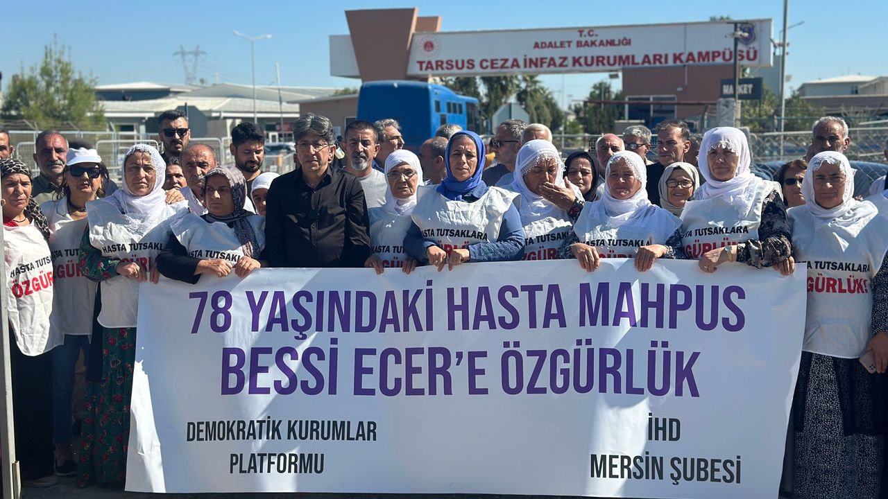 İHD Mersin Şubesi temsilcileri, “Bessi Ecer başta olmak üzere tüm ağır hasta mahpusların serbest bırakılması, sağlık hakkına erişimlerinin güvence altına alınması için mücadelemizi sürdüreceğiz” dedi. Eylem sırasında, “Hasta mahpuslara özgürlük” ve “Yaşam hakkı engellenemez” yazılı pankartlar taşındı. Katılımcılar, açıklamanın ardından sessiz oturma eylemini bir süre daha sürdürdü.