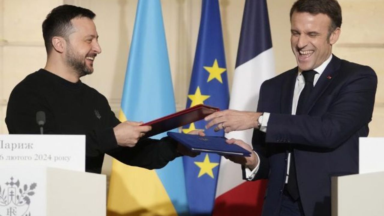Başkentteki Elysee Sarayı'nda bir araya gelen Fransa Cumhurbaşkanı Emmanuel Macron ile Zelenskiy, yeni bir güvenlik anlaşması imzaladı. Anlaşma, Kiev'e 3 milyar euro değerinde askeri yardım gönderme taahhüdü içeriyor.