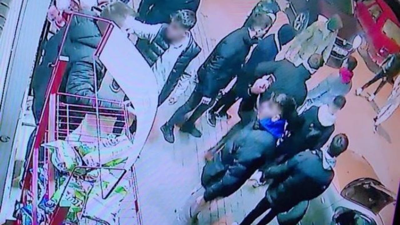 Gençlerin markete sığındığı, diğer şahısların marketi bastığı ve market sahibinin şahısları püskürtüp kavgayı sonlandırdığı anlar güvenlik kamerasına saniye saniye yansıdı.