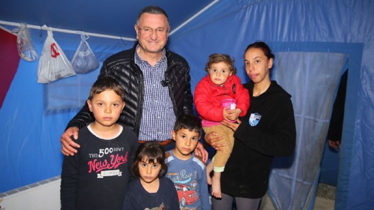 Başkan Savaş ihtiyaç ve eksikliklerin giderilmesi için geçici barınma merkezini ziyareti sırasında 2 kardeşin gönderdiği kumbara ile üzerinde yazılı notu çadırda yaşayan 4 kardeşe teslim etti.