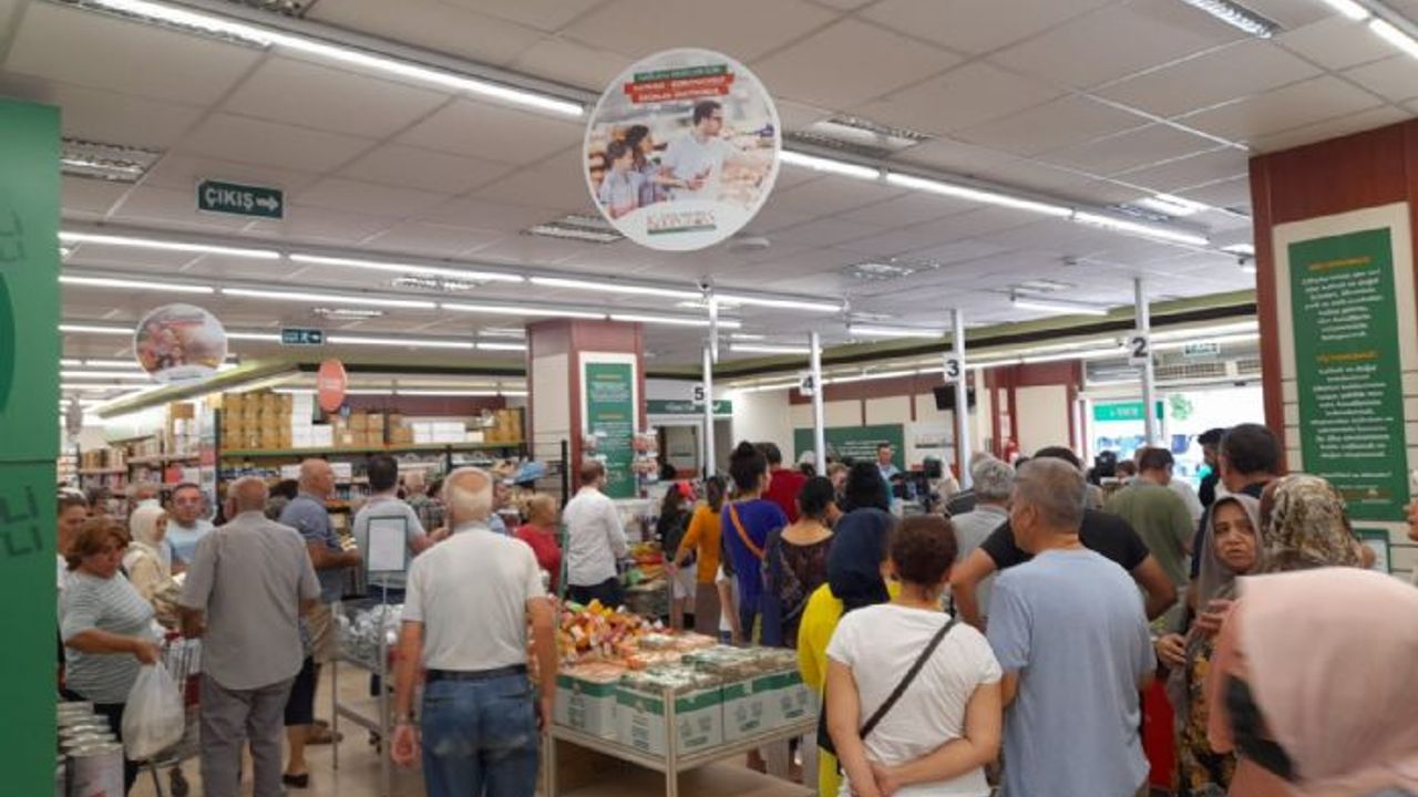 Tarım Kredi Kooperatifleri'ne ait bazı marketlerin önünde 15 Ağustos Pazartesi günü itibariyle kuyruklar oluştu. Özellikle emekliler, indirim beklentisiyle marketlere akın etti. Mersin'de Muğdat Camii'nin altında yer alan markette 2 litrelik ayçiçek yağının fiyatı 64,5 TL olarak görülürken, uygun fiyata ürün sattığını iddia eden bazı marketlerde ise 2 litrelik yağın güncel fiyatı 67,5 TL olarak yer aldı. Tarım Kredi Kooperatifi'ne ait marketlerde 5 litrelik zeytinyağı 400 TL, 1 kilogram küp şeker 22,5 TL, 500 gram makarna 6,90 TL ve 1 kilogram çay 76,5 TL fiyattan satışa sunuldu.