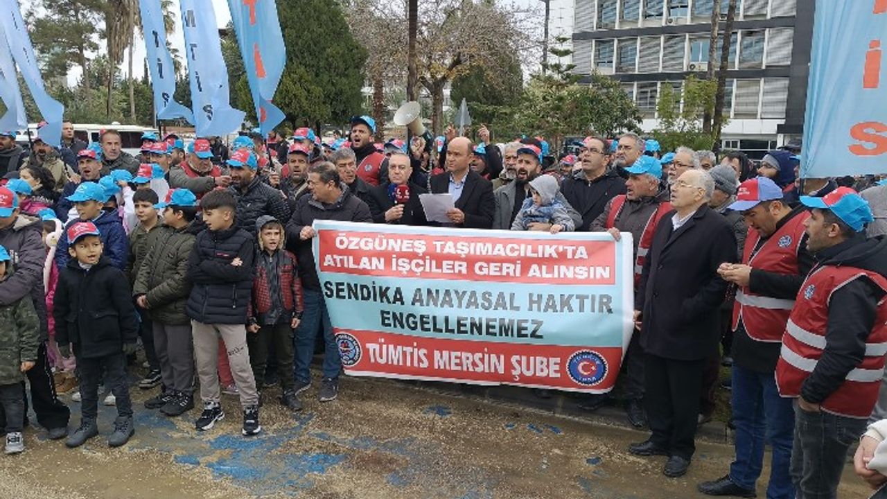 İşten çıkarılmalarının 22. gününde bu sefer çocuklarıyla birlikte Liman A Kapısı önünde eylem yapan Özgüneş Taşımacılık işçileri, bir kez daha haklarını haykırdı. Burada işçiler adına açıklama yapan Şube Başkanı Savaş Gürkan, Mersin Limanı’nda taşımacılık ve forklift hizmetleri veren Özgüneş Taşımacılığın Mersin Uluslararası Liman İşletmeciliği’ne (MİP) bağlı bir alt iş veren olduğunu belirterek, "Özgüneş Taşımacılık’ta sendikamız geçtiğimiz yıl, örgütlenme süreci yürütmüş, yasal çoğunluğu sağlayarak Çalışma ve Sosyal Güvenlik Bakanlığından Toplu İş Sözleşmesi yapma yetkisini almıştır. Yetkinin alınmasının ardından Toplu İş Sözleşmesi görüşmelerine başlanmıştır. Ancak tam da bu aşamada, Özgüneş işvereni, ana firma MİP ile birlikte hareket ederek ihaleyi alamadık bahanesine sığınarak, sendika üyesi işçileri işten çıkarmıştır. İşçilere önce sözlü olarak iş akitlerinin feshedildiği bildirilmiş, ardından kartları iptal edilerek işyerine girişleri engellenmiştir. İşverenler, hukuku dolanmayı alışkanlık haline getirmişlerdir. Özgüneş ve MIP işvereni de, bugüne kadar 180’yi aşkın işçiyi hukuksuz biçimde işten atmıştır. İşveren, sözleşmenin bittiğini iddia etmektedir. Ancak hepimiz çok iyi biliyoruz ki burada esas amaç, işçilerin sendikalı olmasını engellemektir. İşçiyi ne kadar sendikasız çalıştırırsam o kadar kar ederim anlayışıyla hareket edenler, emeği, hakkı ve hukuku yok saymaktadır. İşverenin derdi işin sürmesi değil; işçiyi daha güvencesiz, daha ucuz ve örgütsüz çalıştırmaktır.